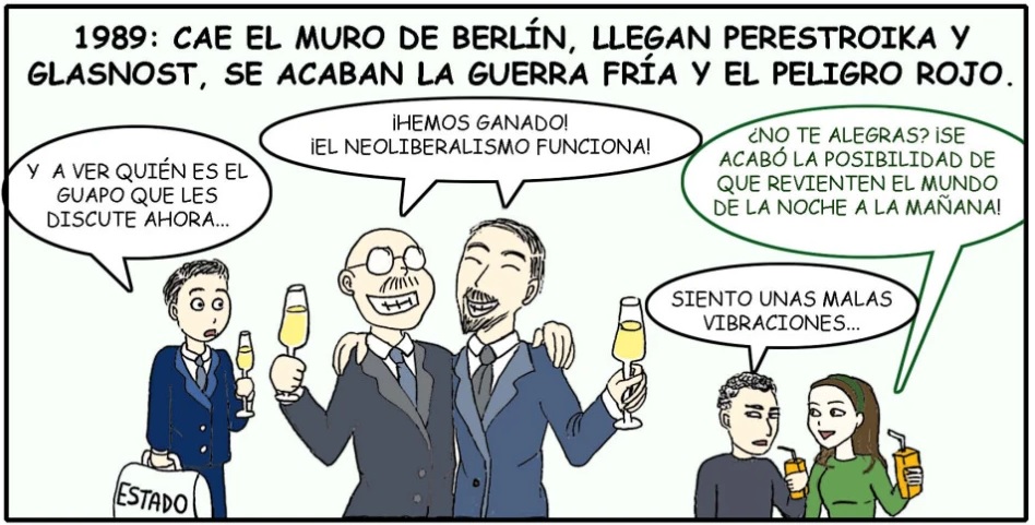 Hoy no tenía nada disponible para actualizar mi blog, pero hete aquí que mi santa esposa, se ha decidido a hacer unos «dibujines», como ella misma dice, sobre todo lo que ha leído acerca de la historia del neoliberalismo en mi diario.