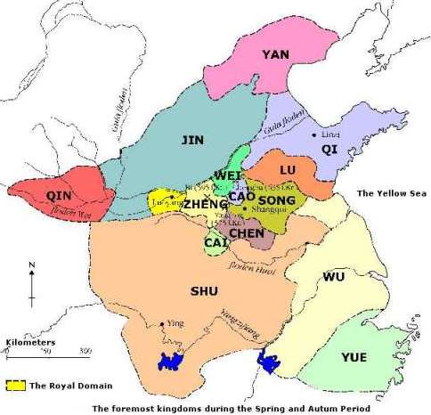 A principios del siglo VIII a.C., los gobernantes de la dinastía Zhou (todavía no había emperadores como los conocemos hoy en día), se vieron obligados a recurrir cada vez más y más al feudalismo (concesión de autoridad jurídica y militar y tierras a sus vasallos a cambio de servicios y reconocimiento de soberanía) porque el territorio chino (por aquel entonces ya ocupaba las cuencas del Yang-Tsé y del río Amarillo) se había hecho demasiado grande para gobernarlo centralizadamente y se necesitaba de gobiernos locales para defender las fronteras contra los “bárbaros”, cobrar tributos, realizar obras públicas como los famosos canales, etc.