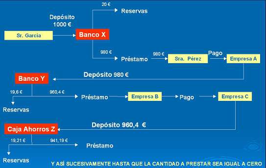 A este sistema actual nuestro se le llama oficialmente en terminología financiera y económica «banca de reserva fraccional o fraccionaria» y consiste en que los bancos se aprovechan de que no retiramos (normalmente) todos nuestros depósitos a la vez y pueden con ello prestar ese dinero (manteniendo sólo una fracción de él, de ahí el nombre) a otros a un interés ganando más dinerito para sí mismos.
