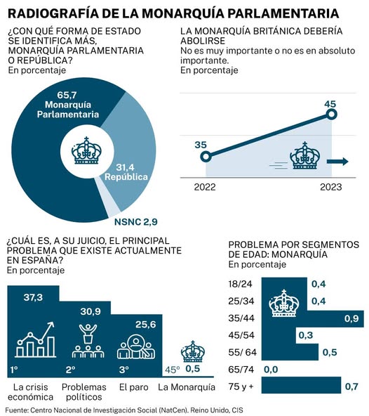 La Monarquía ocupa el puesto 45 entre las preocupaciones de los españoles, citada por tan solo el 0,5% en una encuesta del CIS de octubre del 2022.